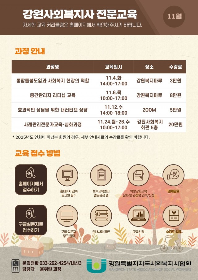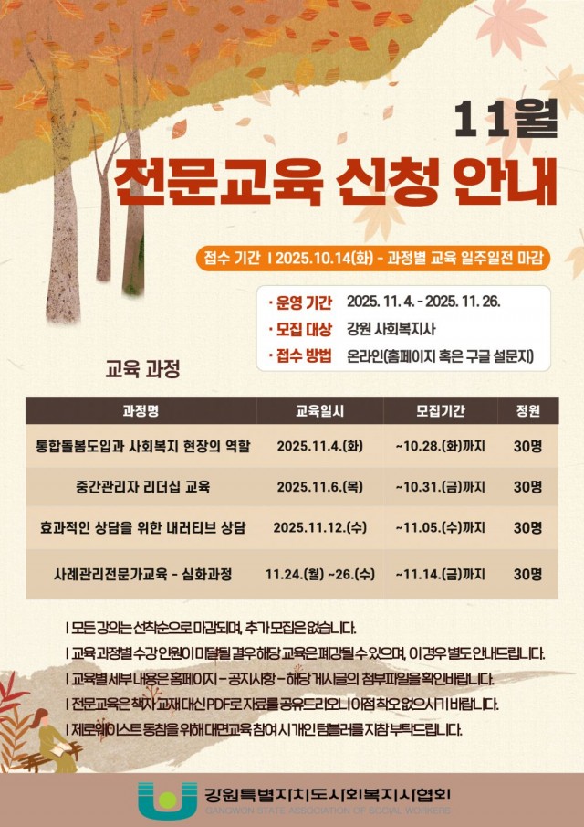 (강원사회복지사협회) 2025년도 11월 강원사회복지사 전문교육 신청 안내