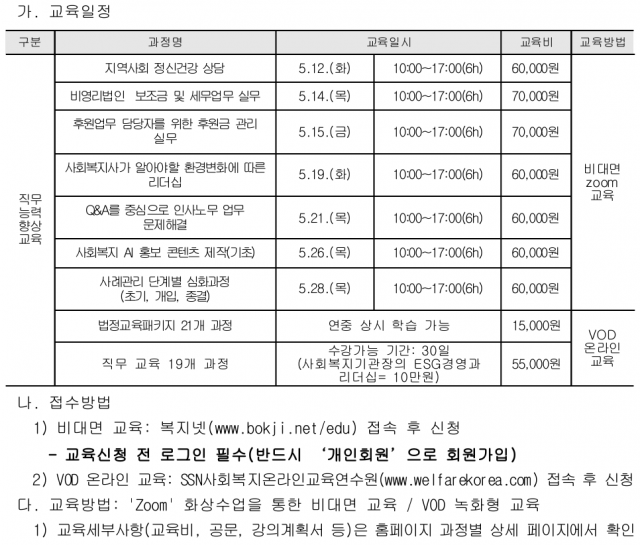 (한국사회복지협의회) 2026년 5월 직무능력향상교육 안내
